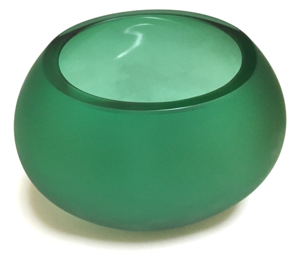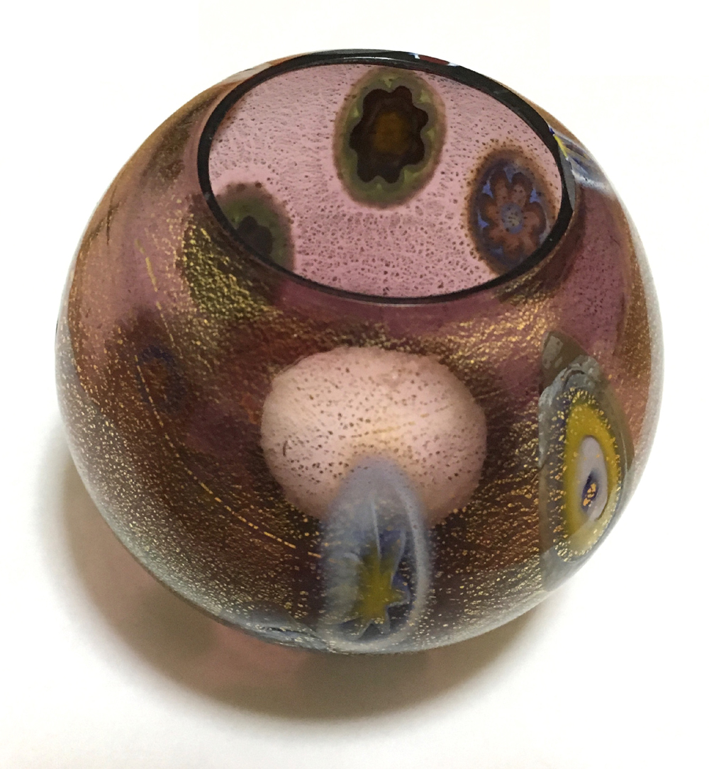ムラーノ島のベネチアングラス伝統メーカーFornace Mianで作られた手づくりの花瓶。高さ 13cm 横幅 15cm