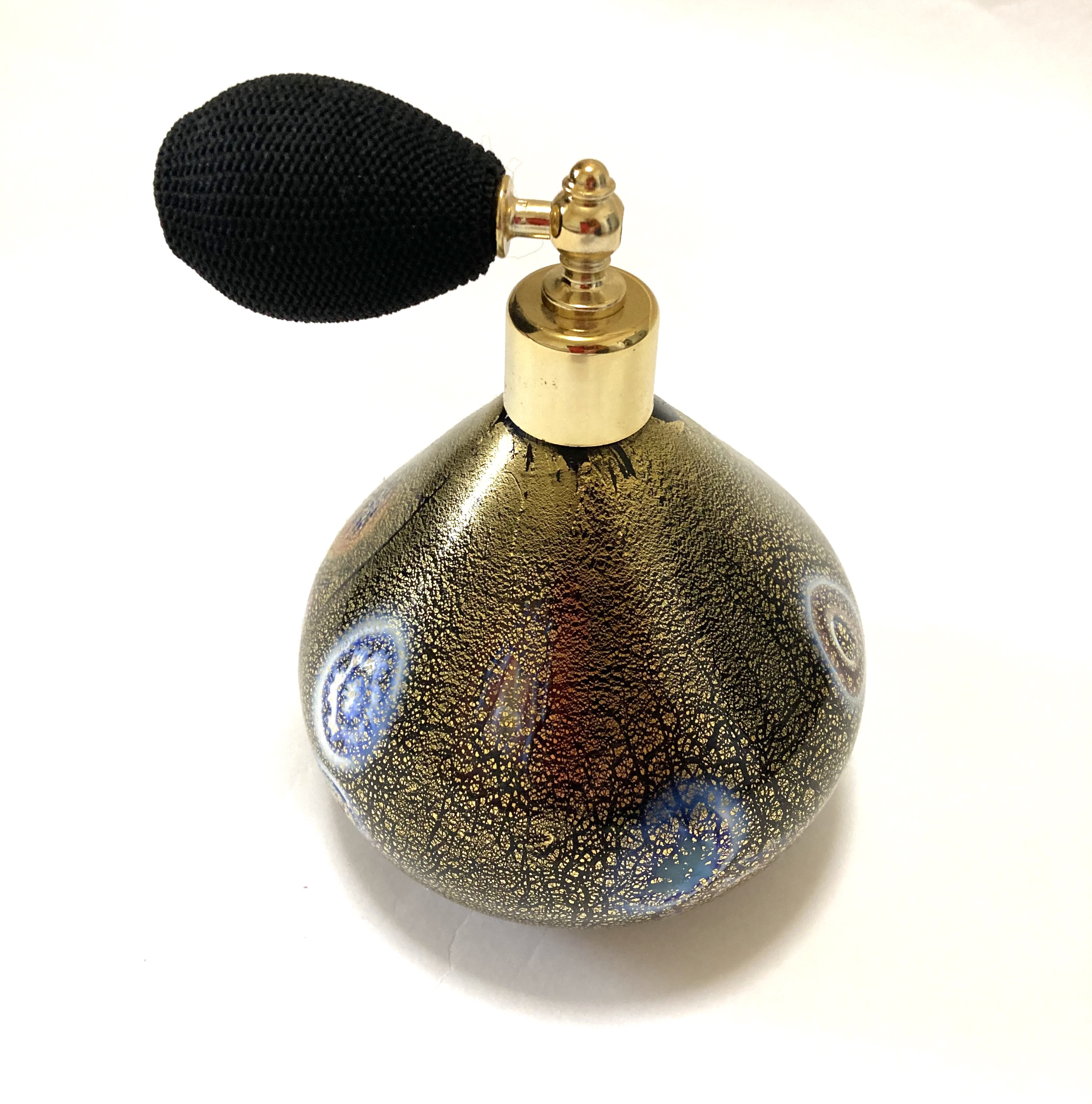 ムラーノ島のベネチアングラス伝統メーカーFerro Lorenzoで作られた手づくりのガラスの香水瓶。高さ:13cm