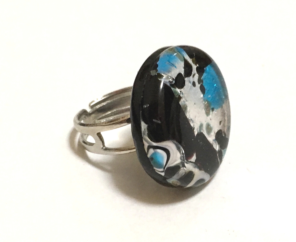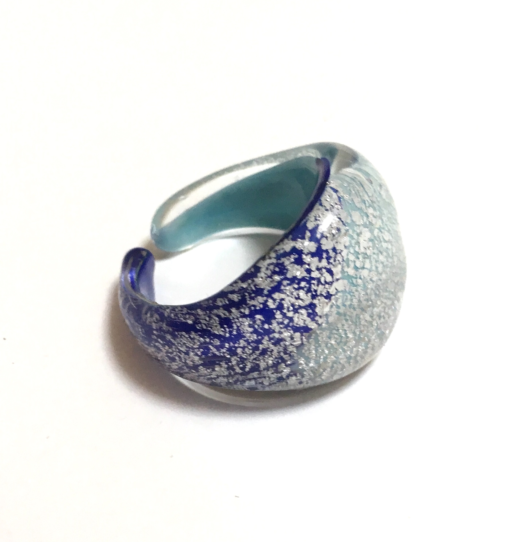 ムラーノ島のベネチアングラス伝統メーカーDe Biasiの手づくりベネチアングラス指輪。直径 : 2.5cm