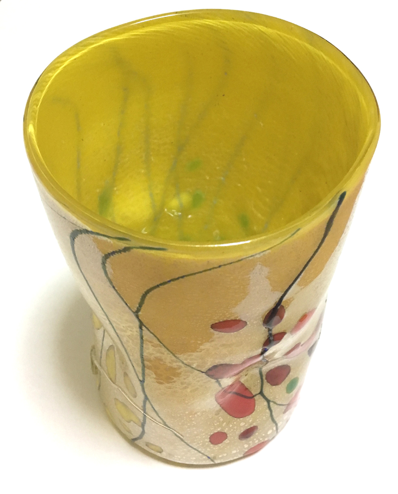 ムラーノ島のベネチアングラス伝統メーカーFornace Mianで作られた手づくりの花瓶。高さ 17cm 直径 10cm