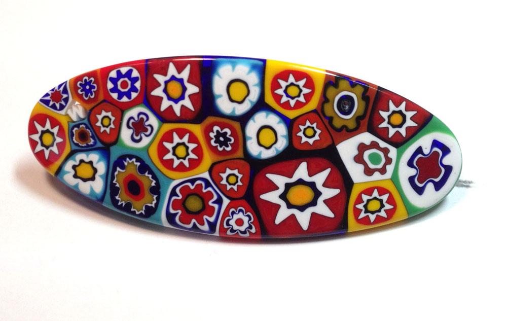 ムリーネ技法を使って、ムラーノ島の職人に作られた手づくりのヘアクリップ。長さは9cm。